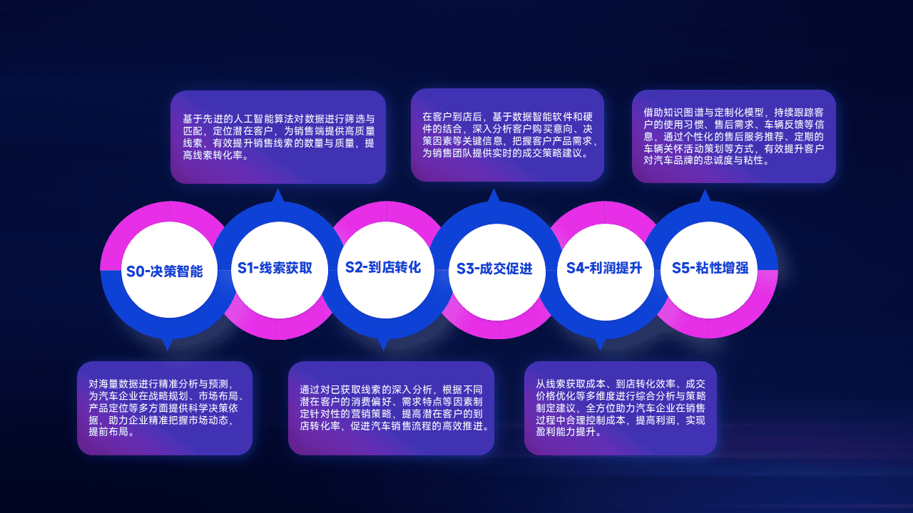 通过拓宽潜在客户来源、、优化线索分配并提高到店转化率,,,,以增强销售效率。。。同时,,利用线索数据不断优化分析模型,,,,有效提升转化率,,,,扩大营销影响力。。。